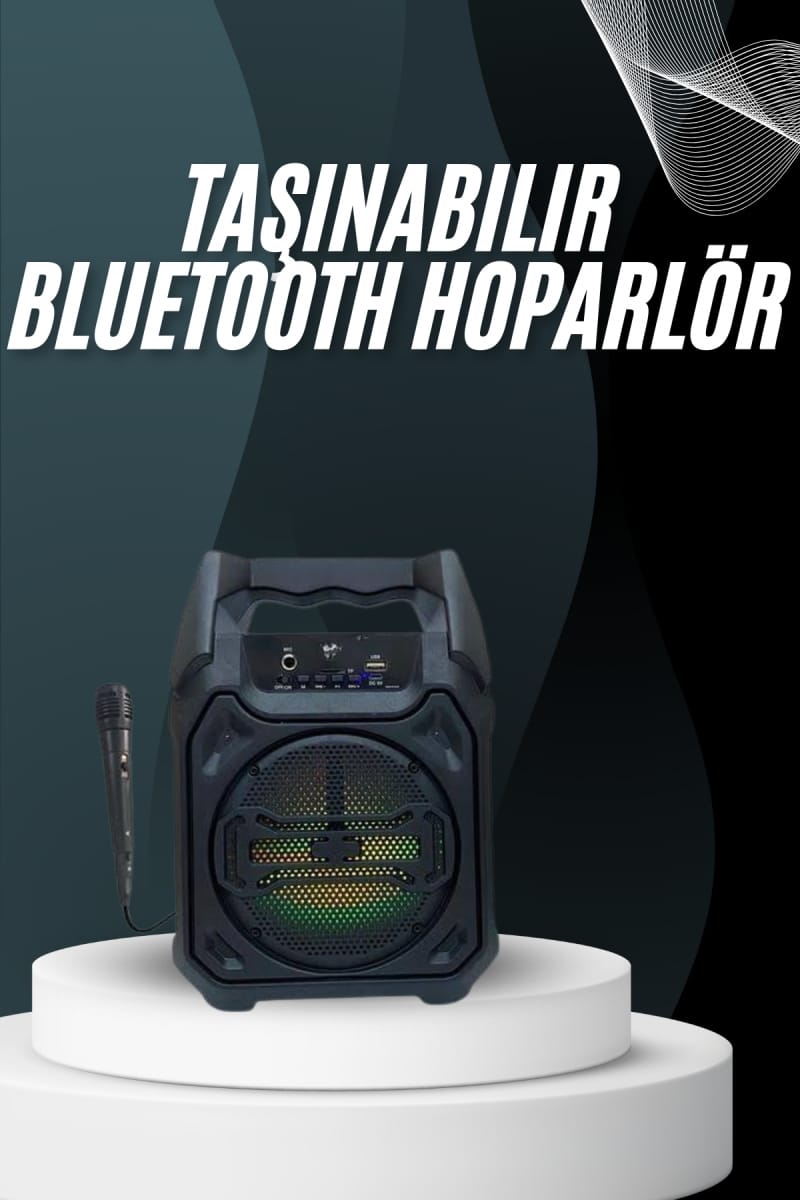 Kablosuz Bluetooth Hoparlör Taşınabilir 6.5 inç LED Işık Kareoke