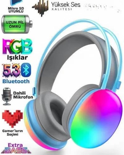 Yeni Nesil Kulak Üstü Kablosuz Uzun Ömürlü RGB Işıklı Bluetooth Kulaklık