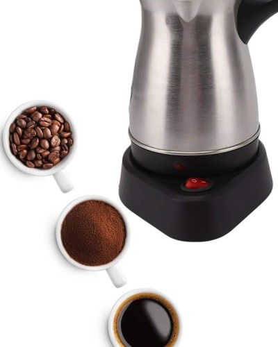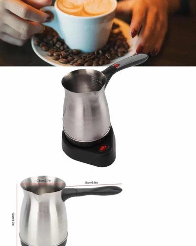 Bu elektrikli cezve, 800 watt gücüyle yüksek performans sağlar ve mükemmel Türk kahvesi deneyimi sunar. 360 ml kapasitesi ile 6 fincana kadar kahve hazırlayabilirsiniz, böylece kalabalık misafirlerinize veya büyük aile yemeklerinde kolayca kahve ikram edebilirsiniz. Gizli rezistans teknolojisi, hızlı ısınma ve güvenli kullanım sağlar, ayrıca temizlik açısından da büyük kolaylık sunar.360 derece dönebilen kablosuz tabanı, rahat bir kullanım sağlar ve her açıdan kolayca hareket etmenize olanak tanır. Paslanmaz çelik gövdesi, hem dayanıklı hem de estetik açıdan şık bir görünüm sunar. Kolayca temizlenebilen tasarımı, hijyenik bir kullanım imkanı tanır ve her seferinde taze kahve hazırlamanızı sağlar.Cezvenin üzerinde bulunan kırmızı güç düğmesi ile açma ve kapama işlemleri son derece basittir. Isınmayan ergonomik kulpu ise güvenli ve rahat bir tutuş sağlar. Paslanmaz çelik yapısı, uzun ömürlü kullanım ve şık bir tasarım sunarak mutfağınıza zarif bir dokunuş katar.Bu elektrikli cezve, Türk kahvesi sevenler için mükemmel bir seçimdir. Hem işlevsel hem de estetik özellikleriyle kahve hazırlama deneyiminizi daha pratik ve keyifli hale getirir. 6 fincana kadar kapasitesiyle geniş aileler ve misafirler için ideal bir yardımcıdır.