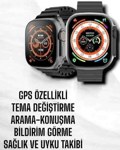 Bu ultra akıllı saat, geniş 49 MM ekranı ve gri kasa rengiyle hem şıklığı hem de fonksiyonelliği bir arada sunar.• Arama ve Bildirim Kontrolü: Telefonunuza gelen çağrıları cevaplayabilir, mesajlarınızı okuyabilir ve cevapsız çağrılarınızı kolayca kontrol edebilirsiniz.• Sağlık ve Uyku Takibi: Günlük adımsayar, kalp atış hızı takibi ve uyku düzeni analiziyle sağlıklı bir yaşam tarzı oluşturun.• Dayanıklı Yapı: IPX sertifikası ile suya ve toza karşı koruma sunar; açık hava sporlarında güvenle kullanabilirsiniz.• Uzun Pil Ömrü: 300-400 mAh güçlü bataryasıyla kesintisiz bir kullanıcı deneyimi sunar.• Kişiselleştirilmiş Konfor: Çift kordon seçeneği ile tarzınıza uygun kullanım imkanı sağlar.Tüm bu özellikleri ve şık tasarımıyla, bu saat gündelik hayatınızın vazgeçilmez bir parçası olacak!
