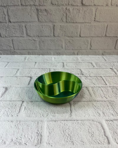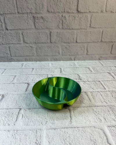 Bölmeli yapısı sayesinde farklı atıştırmalıklar aynı kase içinde düzenli şekilde sunulabilir. Bu özellik, özellikle misafir ağırlarken pratiklik sağlar. Yeşil rengi, masa üzerinde doğal ve ferah bir görünüm oluşturur.
