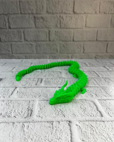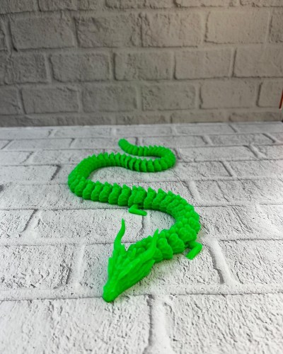 Yeşil Hareketli Ejderha Figürü, mitoloji ve fantastik dünyaların büyüsünü yaşam alanlarınıza taşıyan özel bir dekoratif üründür. 60 cm uzunluğundaki esnek gövdesi ve eklemli yapısı sayesinde ejderha farklı şekillerde konumlandırılabilir. Detaylı pullu yüzeyi ve baş tasarımı, ürüne gerçekçi ve güçlü bir görünüm kazandırır.