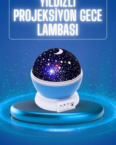 Gece Lambası Projeksiyon Görünümlü Şarjlı Yıldızlı Yuvarlak