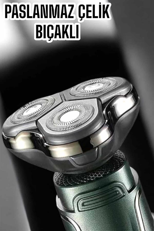Bu 3D akıllı tıraş makinesi, saç, sakal, burun ve kulak tüylerini alırken, mükemmel bir performans ve hassasiyet sunar. Yüksek kaliteli paslanmaz çelik bıçaklar, ultra keskin yapıları ile en yoğun ve uzun sakalları bile kolayca keser. Bıçakların asılma ya da çekilme yapmadan, cilt dostu bir şekilde çalışması, kullanıcıların pürüzsüz bir tıraş deneyimi yaşamasını sağlar. Cihazın her türlü kesim için özelleştirilebilen başlıkları, kullanıcıların istedikleri stili yaratmalarına yardımcı olur. Özellikle burun ve kulak tüyleri için tasarlanmış başlıklar, ağrısız ve etkili bir tüy alma işlemi sunar. Dilediğiniz her türlü bakım ihtiyacını karşılayabileceğiniz bu profesyonel cihaz, 1 saatlik şarj süresiyle 90 dakika boyunca kesintisiz kullanım sağlar. Ergonomik tasarımı sayesinde kolayca kullanabilir, her kullanım sonrası pratik temizleme işlemi ile hijyenik bir bakım deneyimi yaşayabilirsiniz. Ayrıca, 100-240V voltaj aralığında çalışan cihaz, dünya çapında her ülkede rahatlıkla kullanılabilir. Seyahate uygun, kompakt ve şık tasarımı ile her zaman yanınızda taşıyabileceğiniz bu cihaz, kişisel bakımda mükemmel sonuçlar sunar.