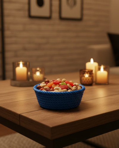 Yuvarlak Çerezlik Lacivert 4×12 cm ölçüsüyle küçük ama işlevsel bir sunum çözümü sunar. Salon sehpaları, masa üstleri ve raf dekorasyonlarında hem dekoratif hem de kullanışlı bir ürün olarak öne çıkar. Lacivert rengi, sıcak ve loş salon aydınlatmalarıyla birleştiğinde şık bir atmosfer oluşturur.