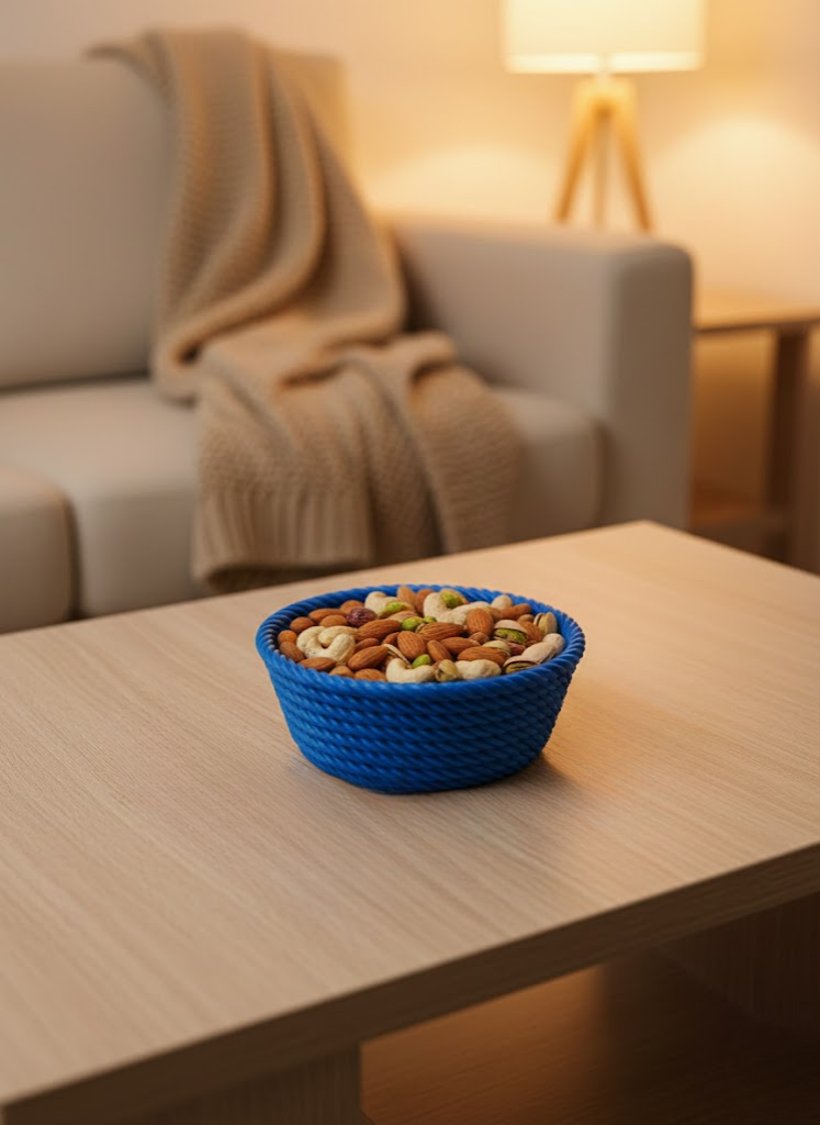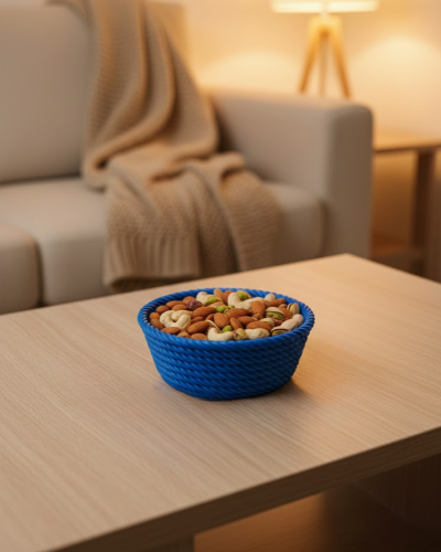 Örgü dokulu dış yüzeyi ürüne hem estetik hem de dekoratif bir karakter kazandırır. Günlük kullanımda olduğu kadar misafir sunumlarında da tercih edilebilir. Salon sehpaları, orta masa, yan sehpa ve raf üstlerinde rahatlıkla konumlandırılabilir. Hafif yapısı sayesinde kolay taşınır ve farklı alanlarda pratik kullanım sunar.