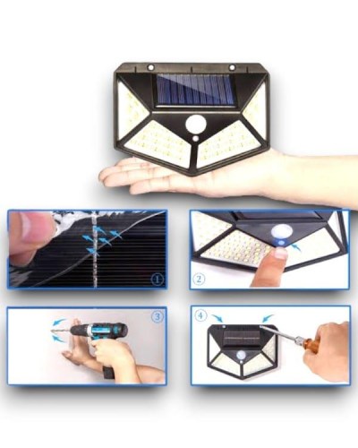 Bahçe balkon teras gibi dış mekanlarınız aydınlık ve dekoratif olması için güneş enerjili solar bahçe aydınlatma – solar lamba. Solar güneş enerjili bahçe aydınlatmanız sabahleyin güneş enerjisi ile kendini şarj eder , gece olunca sensörü sayesinde otomatik yanar. Balkonda , bahçede , pencerede , terasta kabloya gereksinim duymadan kolayca kullanabilirsiniz. Ürün özellikleri Kurulumu kolaydır kablo gerektirmez. Doğrudan güneş alan bir yere yerleştiriniz. Gücü açmak & mod değiştirmek ıçin on/off tuşu vardır. Led sayısı 100 dir. Pır sensörü ve 3 farklı modu ile harekete ve ışığa karşı duyarlıdır. Hareket sensörü hareket algılamadığı zaman 10 saniye içinde otomatik kapanır. Ürün ölçüler 14 cm * 6 cm Paket içeriği Bir adet hareket sensörlü güneş enerjili led aydınlatma dış mekan bahçe 100 led li