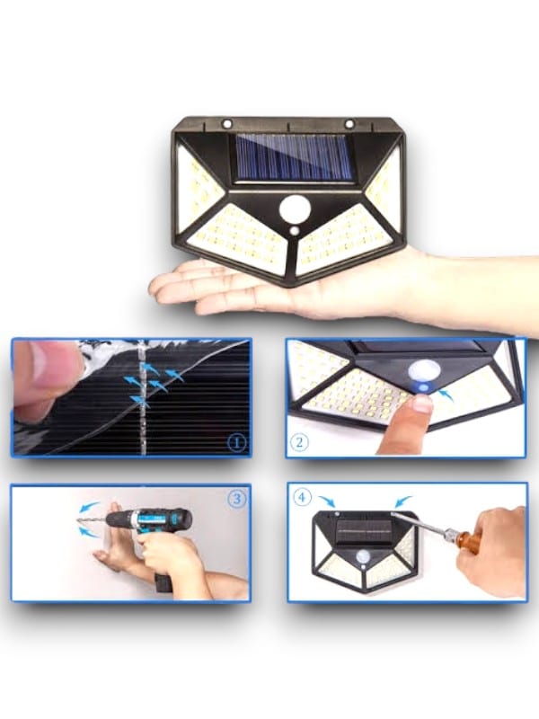 - Kurulumu kolaydır kablo gerektirmez. Doğrudan güneş alan bir yere yerleştiriniz. Gücü açmak & mod değiştirmek ıçin on/off tuşu vardır. Led sayısı 100 dir. Pır sensörü ve 3 farklı modu ile harekete ve ışığa karşı duyarlıdır. Hareket sensörü hareket algılamadığı zaman 10 saniye içinde otomatik kapanır. Ürün ölçüler
